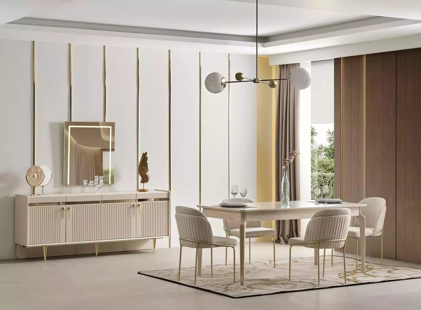 Tesla yemek odası takımı, modern tasarım anlayışının en güzel örneklerinden biridir. Temiz hatları ve minimalist yaklaşımıyla, her türlü dekorasyon stiline uyum sağlar. Zarif detaylar ve ince işçilik, takımın kalitesini gözler önüne seriyor. Alanınızın büyüklüğüne ve ihtiyacınıza uygun farklı konfigürasyon seçenekleri sunarak, mekanınıza özel bir düzenleme imkanı tanıyor.